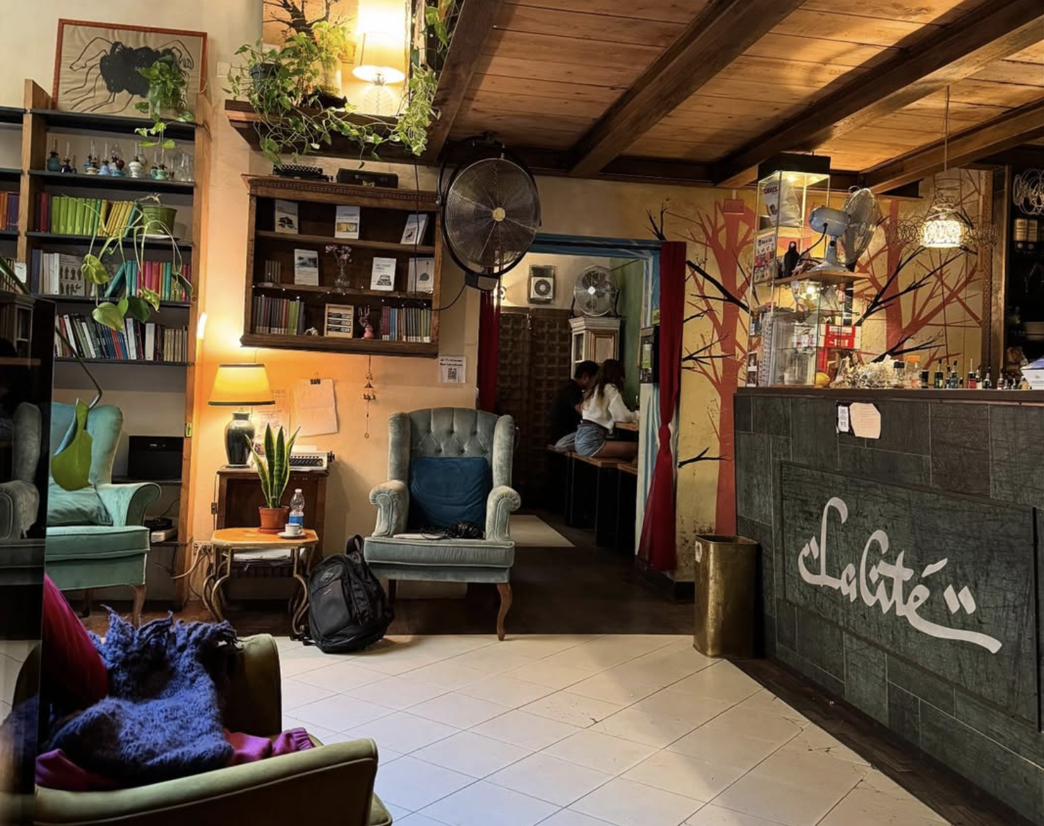 La Cité feels like the coffee shops off my old college campus (We are!…anyone?), and its clientele is mostly students too. The coffee’s cheap, served in the cutest ceramic mugs, and they really don’t mind how long you stay. It’s a tight squeeze with so many tables and bulky chairs packed into one space, but I never fail to find a spot. If you’re especially time- and table-conscious (like me), just grab a seat at the wall-facing long table with bench seating in the room to the left of the coffee bar. That’s where the plugs are, too.