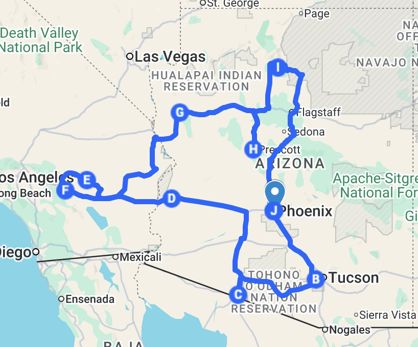 9-Day American Southwest Route (Winter-Friendly!)